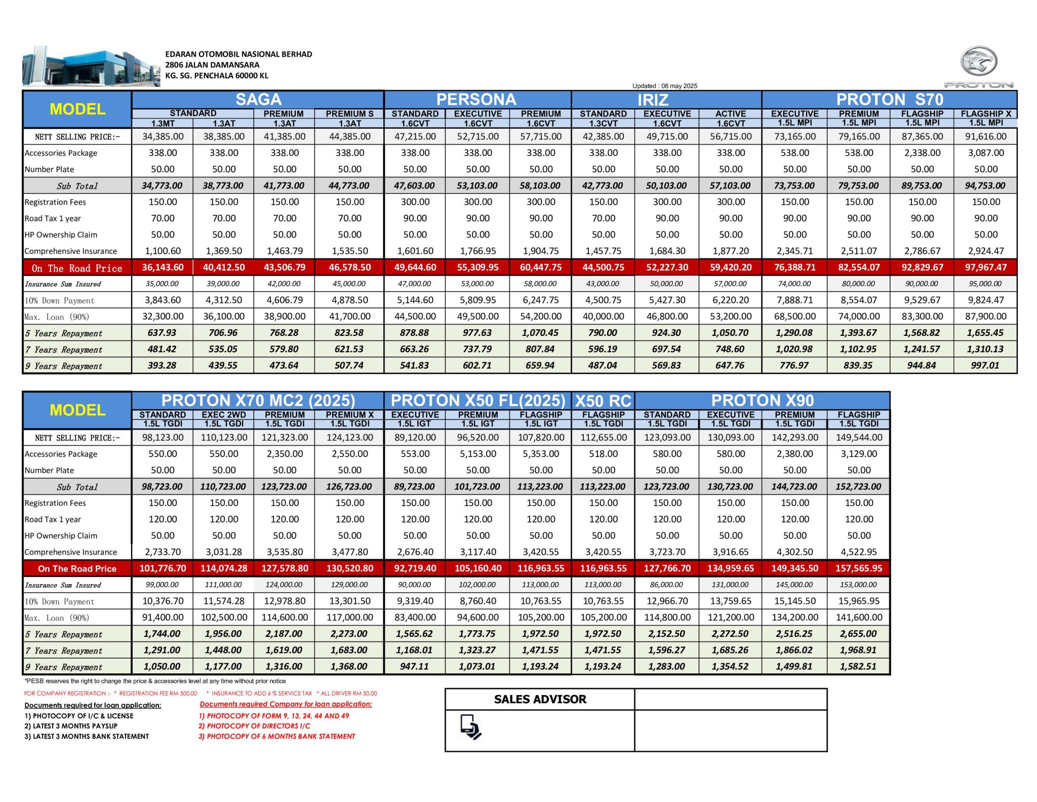Hubungi saya sekarang untuk sebarang pertanyaan mengenai urusan tempahan kereta Proton baru anda.
