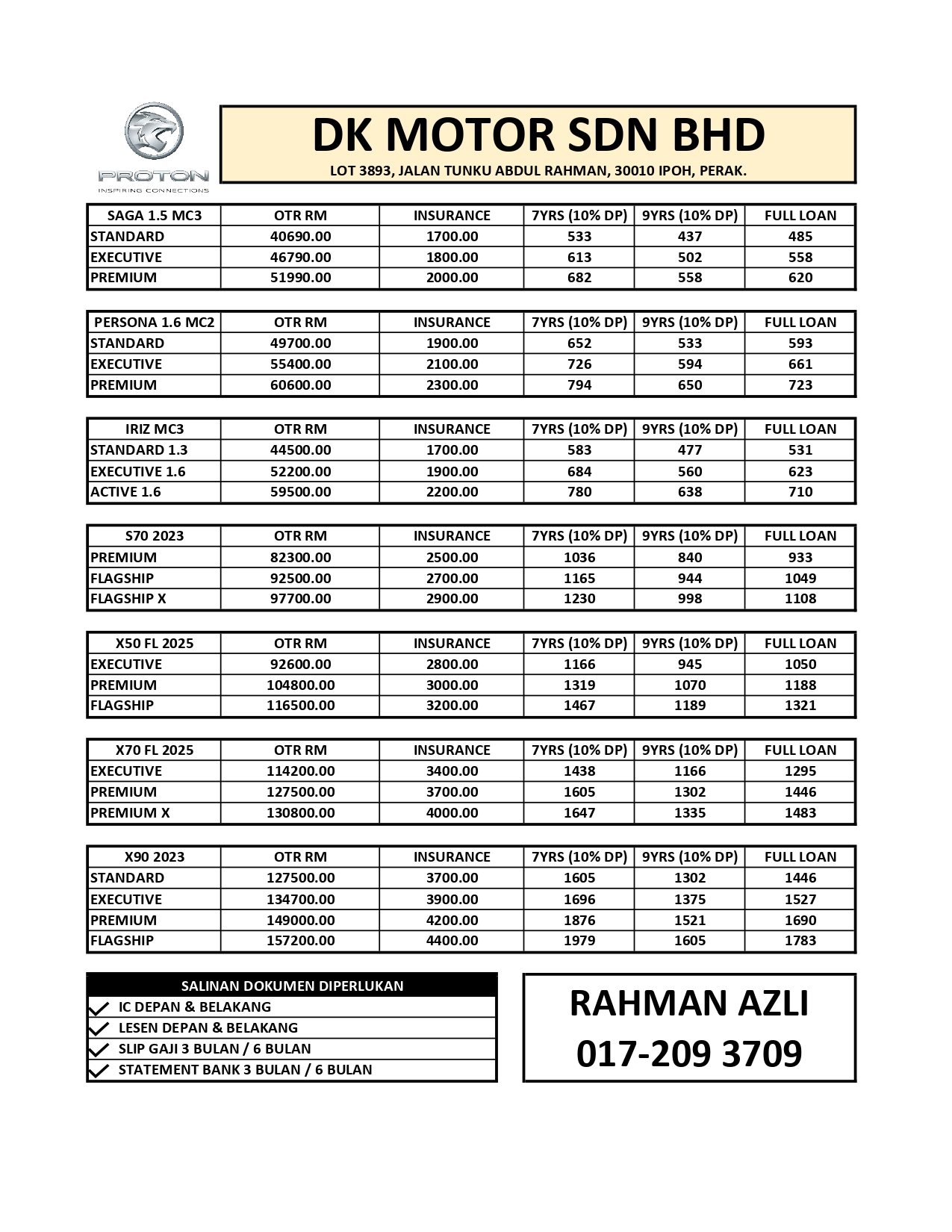 Hai! Nama saya Rahman Azli, Sales Advisor Proton Seri Iskandar yang sah. Berpengalaman lebih 5 tahun dalam bidang jualan kereta di Malaysia.