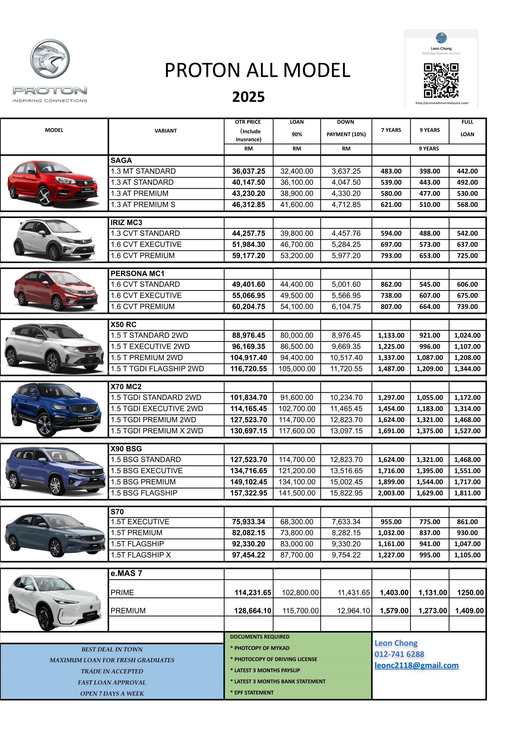Hai! Nama saya Leon, Sales Advisor Proton Seri Kembangan yang sah. Berpengalaman lebih 20 tahun dalam bidang jualan kereta di Malaysia.