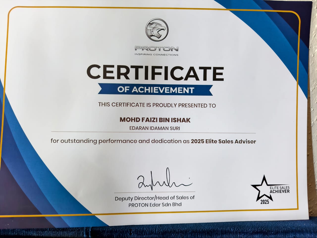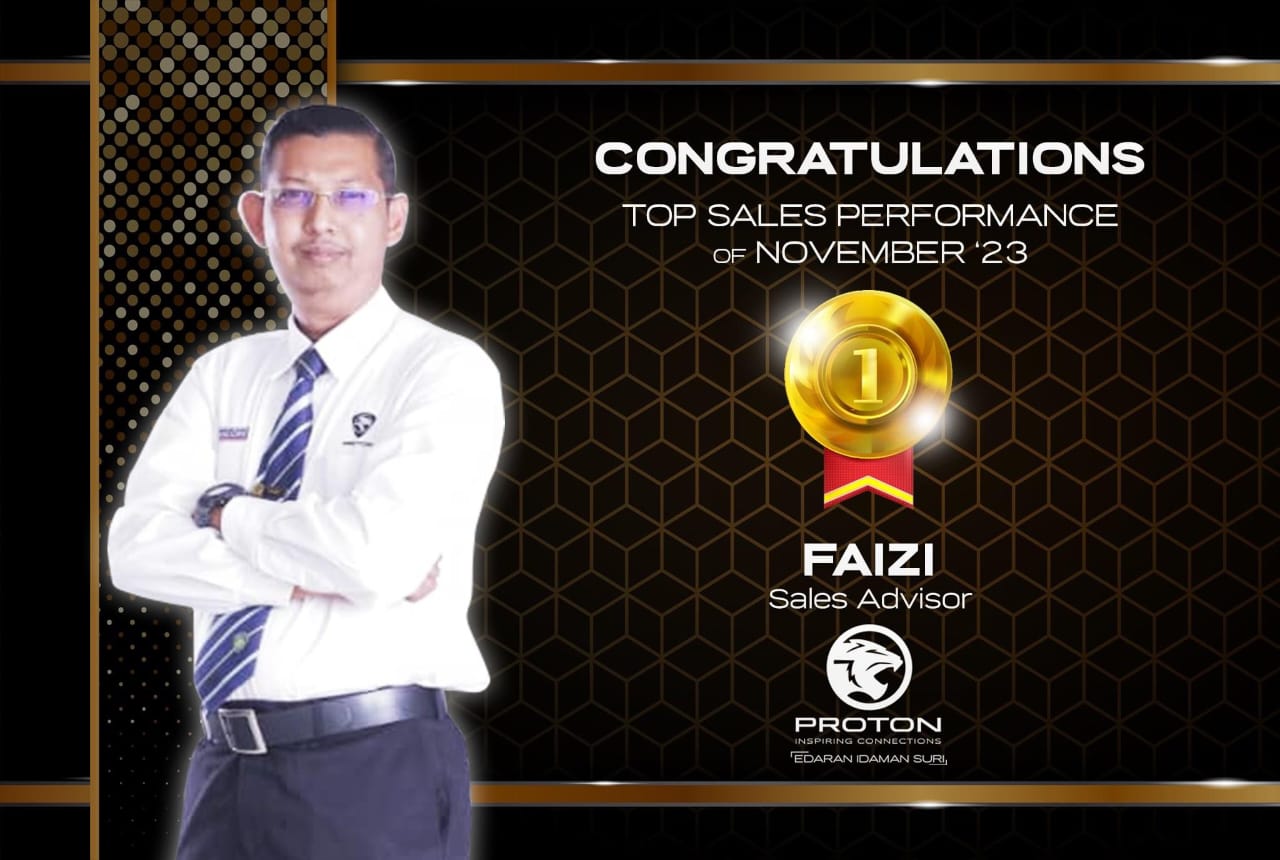 Hai! Nama saya Mohd Faizi, Sales Advisor Proton Simpang Kuala yang sah. Berpengalaman lebih 19 tahun dalam bidang jualan kereta di Malaysia.